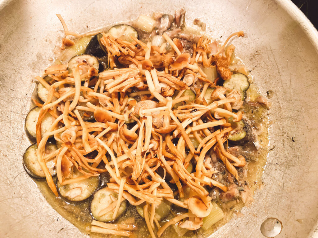 - 味えのきは、旨味たっぷりで香りがいいのでお勧めですが、普通のえのき、または他のきのこでも構いません。