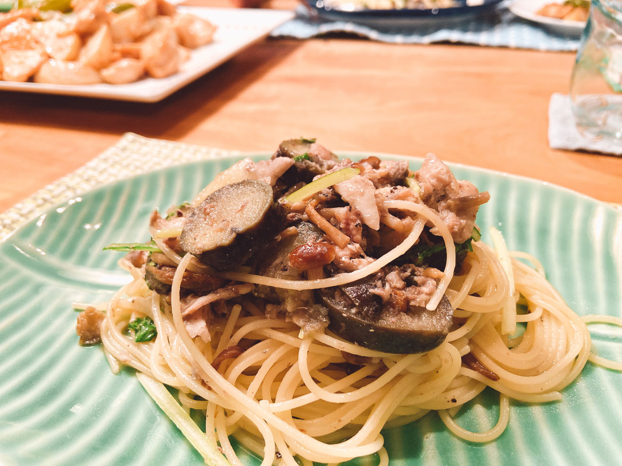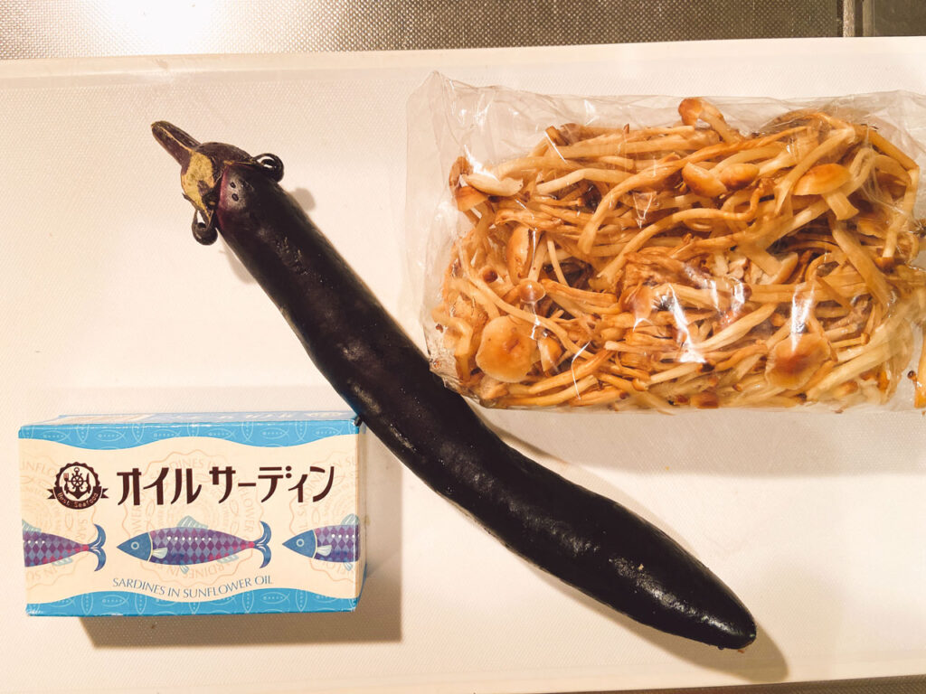 ハタケで採れた秋茄子にオイルサーディンの旨味をぎゅっと吸わせて、パスタと合わせました。秋茄子のおいしさ、やばいです。