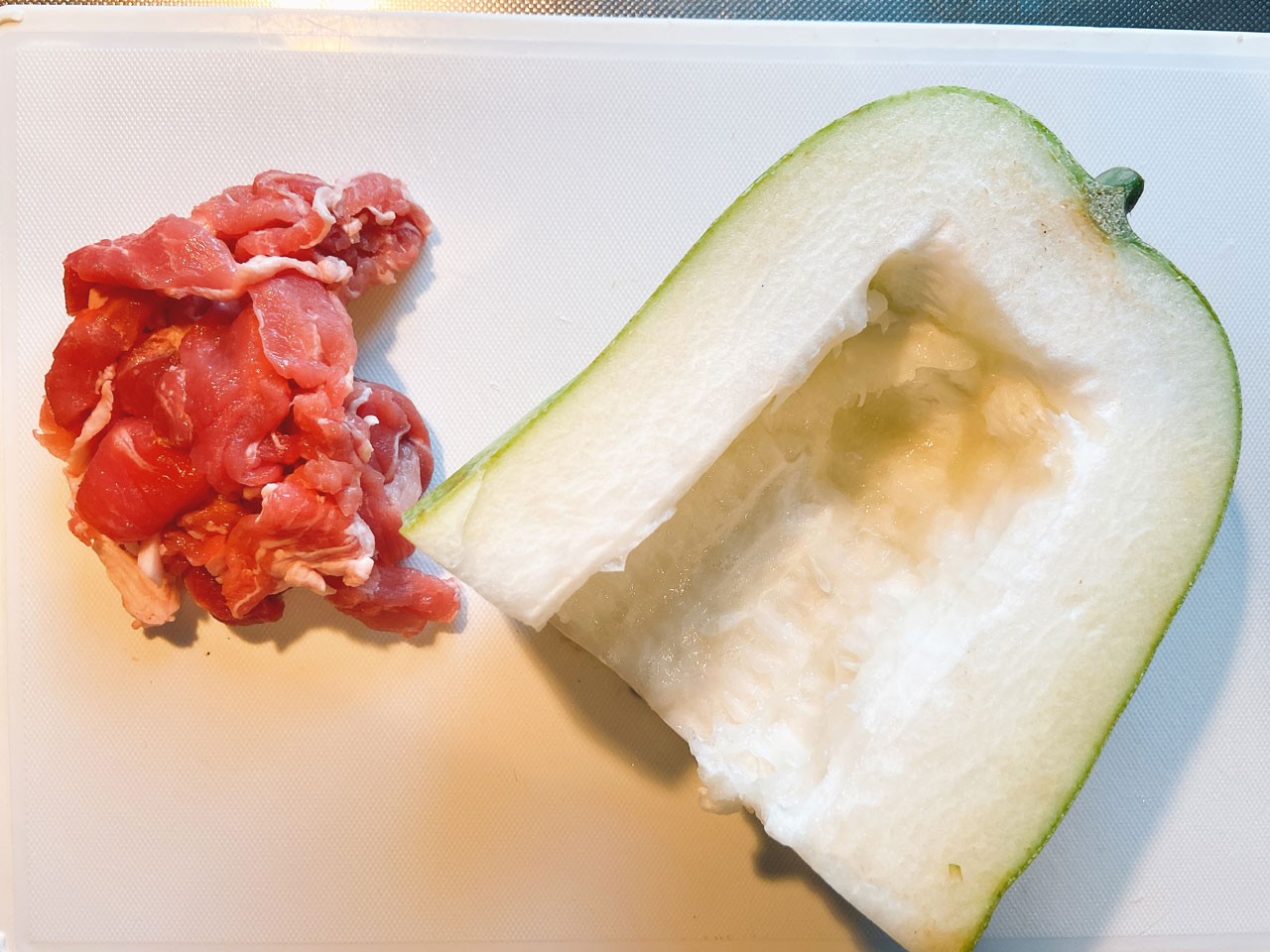 - 冬瓜の皮は、緑の色が見えなくなる程度に厚めにむく方が、火が通った時にとろとろの食感が増します。
